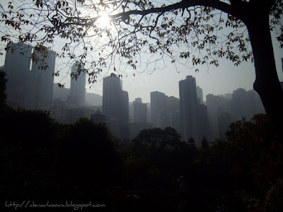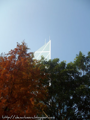 Просто мне нравится это фото:) Деревья цветом пополам поделили картинку. А возвышается сверху Банк оф Чайна (Китайский банк), вот это вот со всех сторон треугольное здание вы наверное часто видели на панорамных фотографиях Гонконга. Визитная карточка как-бы.