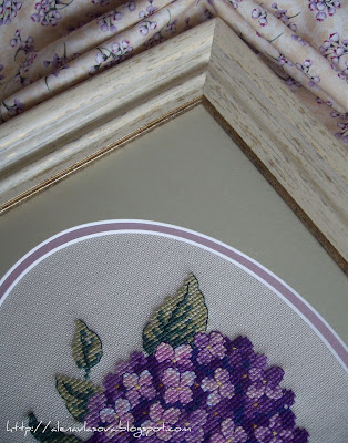 Рамку муж вчера только забрал из Эксара, на Красноармейской, вечером натягивала-клеила. Я уже прям профи в натягивании канвы в рамы:)) Сама рамка типо деревянная, из какой тырсы они это делают?! И смех и грех... Но красивая, цвет такой благородный, золотая кромочка не вульгарная, как бывает с рамами. Паспарту внутреннее сиреневинькое, основное серо-зелёно-нефритовое такое... не яркое, как раз то что было нужно. Стекло антиблик, которое в фотосессии не учавствовало:) Цветочек без рамки получился 11 на 16 см, в рамке 30,5 на 36,5см.