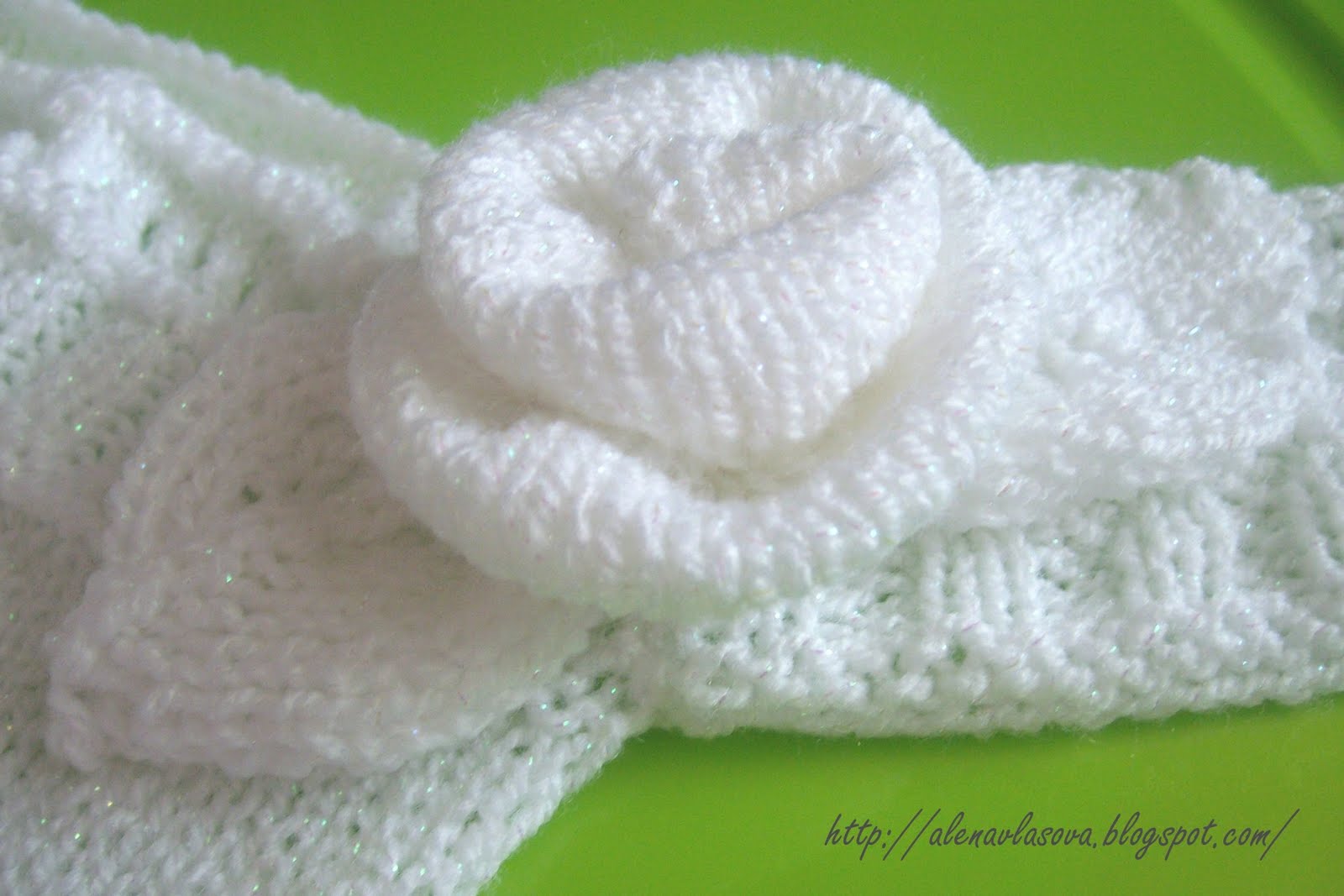 Розочку и листики вязала спицами. Оказывается какие дивные цветы можно спицами вязать, а я думала только крючком:))