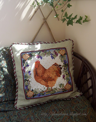 Если вы  уже забыли (что вполне понятно:)) или еще не видели (добро пожаловать-всегда рада-новым читателям), напоминаю, что первая подушка с  красавцем Петухом вышивалась вот здесь , сшилась и описывалась как сшилась здесь , а курочка наконец была готова здесь . И вот она сама, вторая подушка ... УРА!:)))