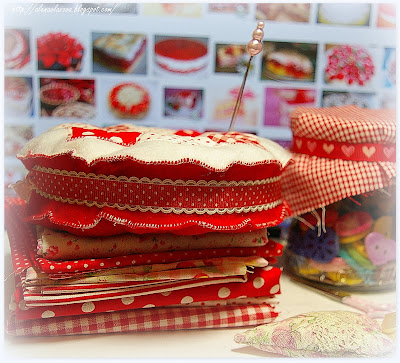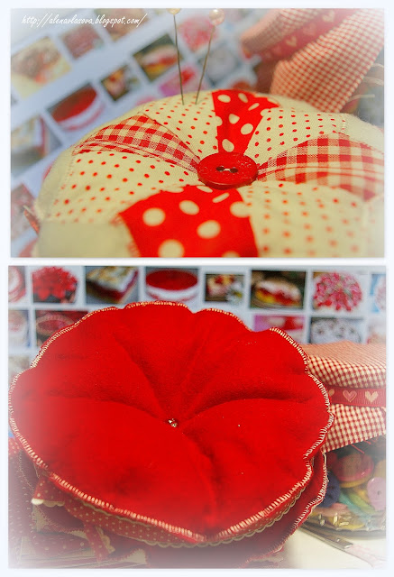 Если быть совсем уж честной.....шила-то я новогоднюю ёлочную игрушку:))) Но пришив звезду к фетру, поняла что ...что-то не то. И тут же родилась игольница:)) Мне она казалась очень даже новогодней. Может быть из-за красного цвета (который я не очень-то люблю, но этот красный набор тканей, который и купила-то чтоб на нём учиться, вроде как красиво и не жалко - всё никак не хочет заканчиваться!:)))))
