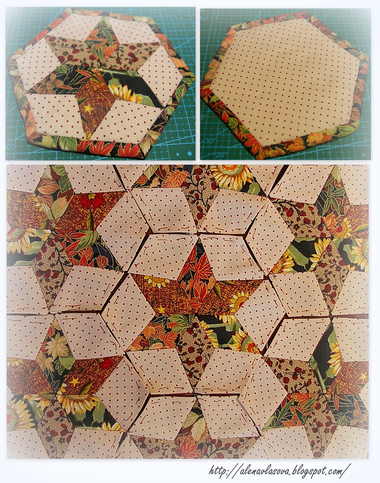 Собственно, додумывать было немного, шкатулка, сшитая из гексагонов - это понятно. А вот рисунок на блоках пришлось вымерять, отрисовывать, менять, переделывать и тд, тп. Сборка самой шкатулки тоже оказалась делом непростым, нашлось несколько подводных камней и результатом я осталась не вполне довольна:)