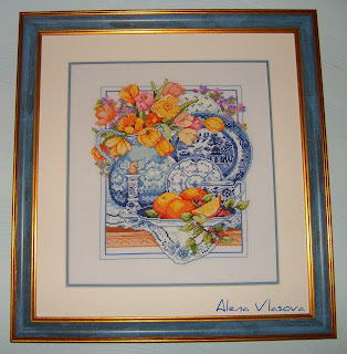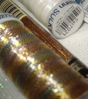 Техотчёт: заменила Крейник металик на Гютерман. Жемчужный цвет соответствует Крейнику, а вот золото и голубой выбрала иначе. Не голубой, а скорее светло-синий, получается хорошо. Дракончик итак намного светлее синих частей рамки. Как-то мне не нравился такой дискомфорт в восприятии.) С синим металиком мне кажется более гармонично. Бисер тоже буду менять, цвет ирис, которым зашивается фон ну никак не подходит. И золотой металик, Гютерман номер 9880 (если это номер на катушке)), красииивый. Меланжевый. Этим металиком прошивается сетка на теле дракона и то что блестит она золото-зелёно-оранжевым ...вот как по мне - красивее чем просто золото.
