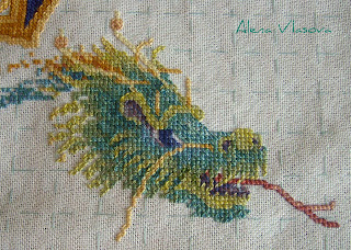 Голова и хвост - самое сложное, но и выглядит потрясающе. На фото это передать сложно. Всё блестит, канва, металик, изображение получается размытым как ни крути объективом.) Но я старалась...