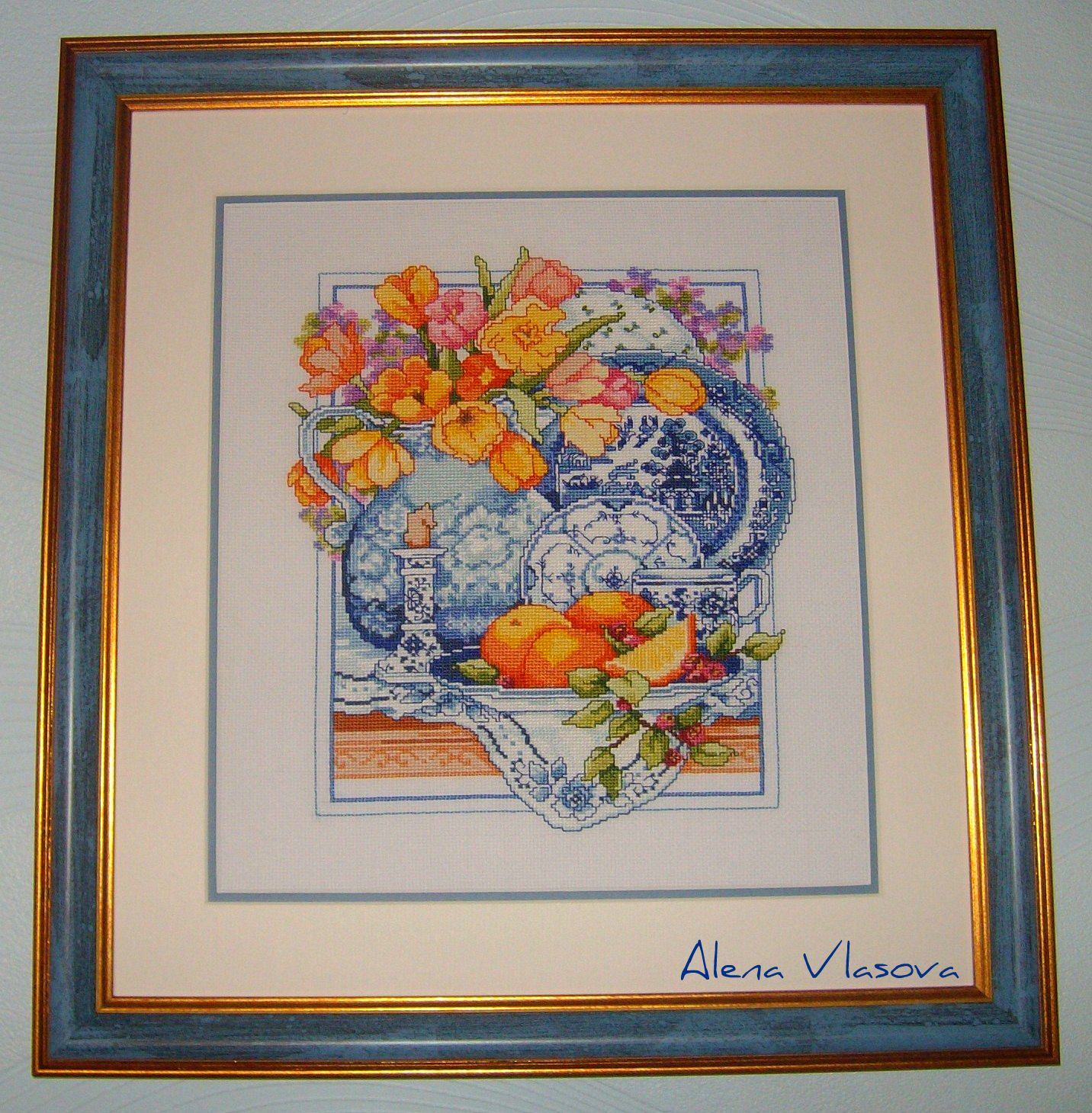 Техотчёт: заменила Крейник металик на Гютерман. Жемчужный цвет соответствует Крейнику, а вот золото и голубой выбрала иначе. Не голубой, а скорее светло-синий, получается хорошо. Дракончик итак намного светлее синих частей рамки. Как-то мне не нравился такой дискомфорт в восприятии.) С синим металиком мне кажется более гармонично. Бисер тоже буду менять, цвет ирис, которым зашивается фон ну никак не подходит. И золотой металик, Гютерман номер 9880 (если это номер на катушке)), красииивый. Меланжевый. Этим металиком прошивается сетка на теле дракона и то что блестит она золото-зелёно-оранжевым ...вот как по мне - красивее чем просто золото.