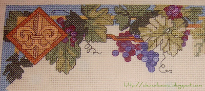 Должна сказать что виноград гораздо сложнее оливок. Листики больше, со схемой постоянно приходится сверятся, потому как они, эти листики, хитрющие. В винограде больше цветов используется. Бэка больше. Но тоже симпатично. Мне вот эти завиточки оч нравятся:)