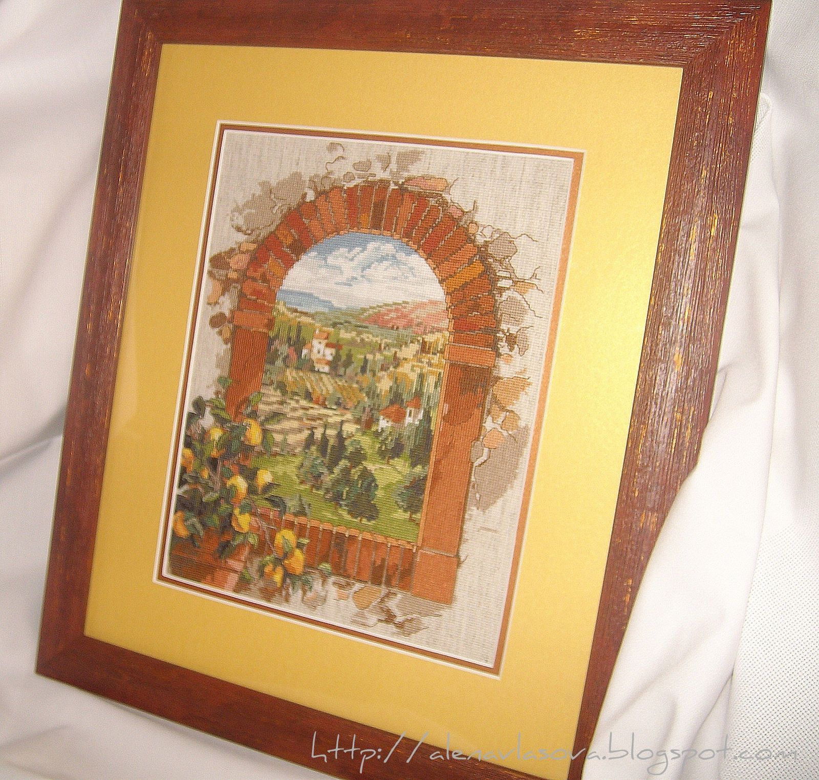 Окно, оно же "Мечты о Тоскани" удалось. А вот фотографироваться не хочет. Я еще в прошлый раз, когда только его закончила, ходила по всему дому, прикидывала где-бы... Оно тааакое вредное. Уж не знаю, лето с ним ждать и на улицу нести...ну разве что.