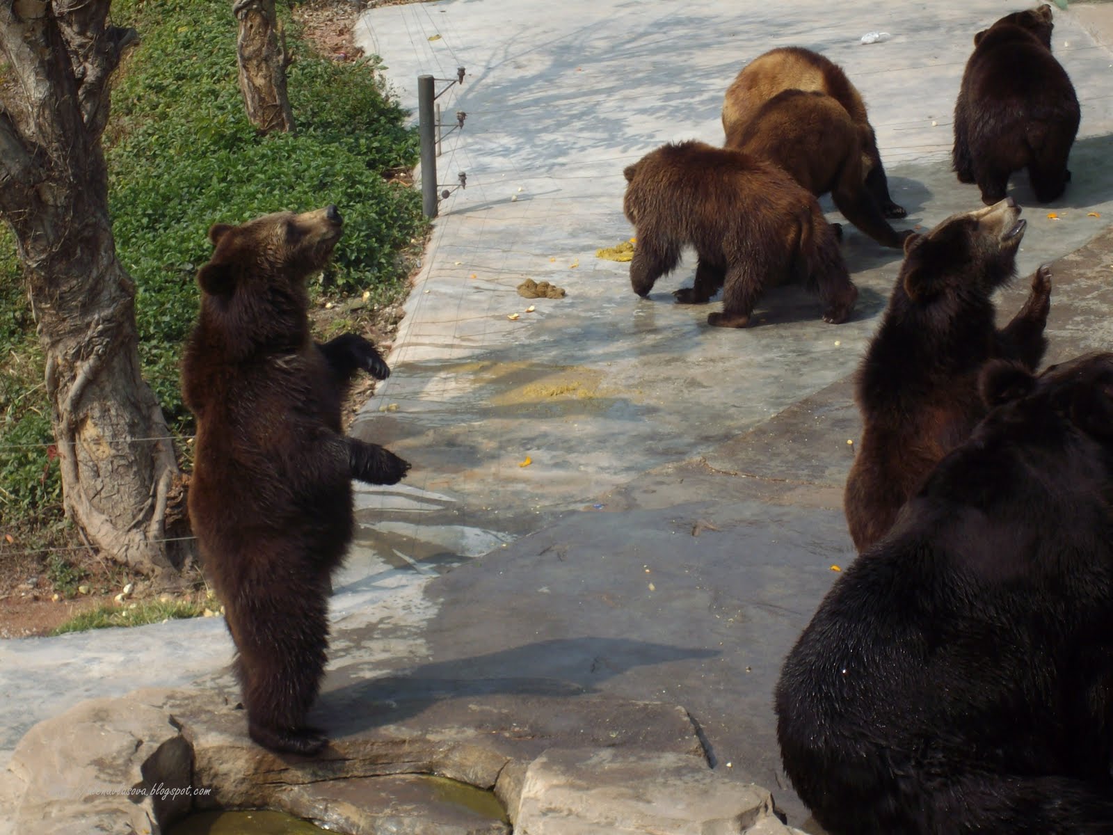 Ой, медведи смешные:) Вот там сверху им яблоки-морковку бросают, а они все по очереди на задние лапы становятся, просят:) Между прочим, оказывается, медведи доооолго могут на задних лапах стоять:))