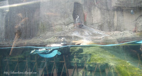 Фотография плохая, лучше и получится не могло, это аквариум, стекло отсвечивает. Но, присмотритесь. Там плавает пингвин! Голова над водой, туловище под. Интересно?:)
