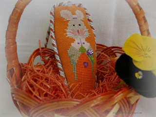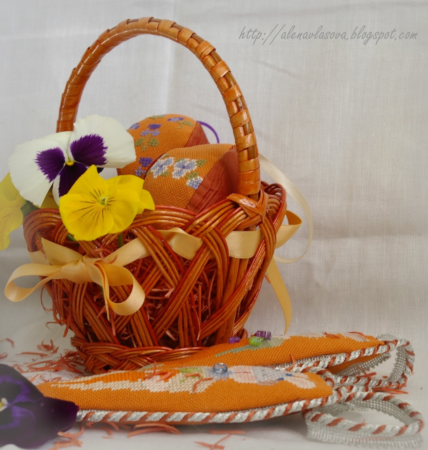 получились у меня совершенно неожиданно. Началось всё с весны, которую девченки мои затребовали в свою комнату. (Я Весну-то закончила, жду рамочку, тогда и хвастаться буду:)) Им так понравился этот простенький дизайн, что они попросили "что-то такое-же маленькое ты мама разве нам не сделаешь на Пасху":)) Сделаю, конечно:)) Но, поскольку в этом году я решила красить яйца в традиционно коричневый цвет, традиционно луковой шелухой (вот так мне взбрендило), "что-то маленькое" хотелось подобрать в цвет, ну тоже взбрендило. Получились эдакие элегантные кролики в морковке с морковкой и яйца (ну во всяком случае они задумывались как яйца:)).