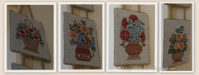 Эти цветочки я вышила еще в прошлом году, отдыхала с ними между большими дизайнами. Поначалу висеть они задумывались на кухне и оформлены должны были быть в брутальные деревянные багеты а-ля деревня. Но, не сложилось. В радостную зелёночайниковую и желтоподсолнуховую тематику кухни цветочки не вписались. И лежали дооолго. Лежали, пока мне вот тут прям сразу не захотелось хоть какого мгновенного результата. Вот правда, делаю-делаю что-то, копошусь-копошусь и всё так долго тянется...надоело. Хочу результат, решила я....И растянула эти пинкипы еще на две недели:)))  Клеила вместе с домиком, собирала вчера. Нособирала вот чего