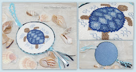 Хочу вам показать сегодня двух маленьких скромных черепашек, хоть и вышитых по одной схеме (с небольшими изменениями), но очень разных. Одну морскую, ... я думаю что она морская, голубенькая во всяком случае:)