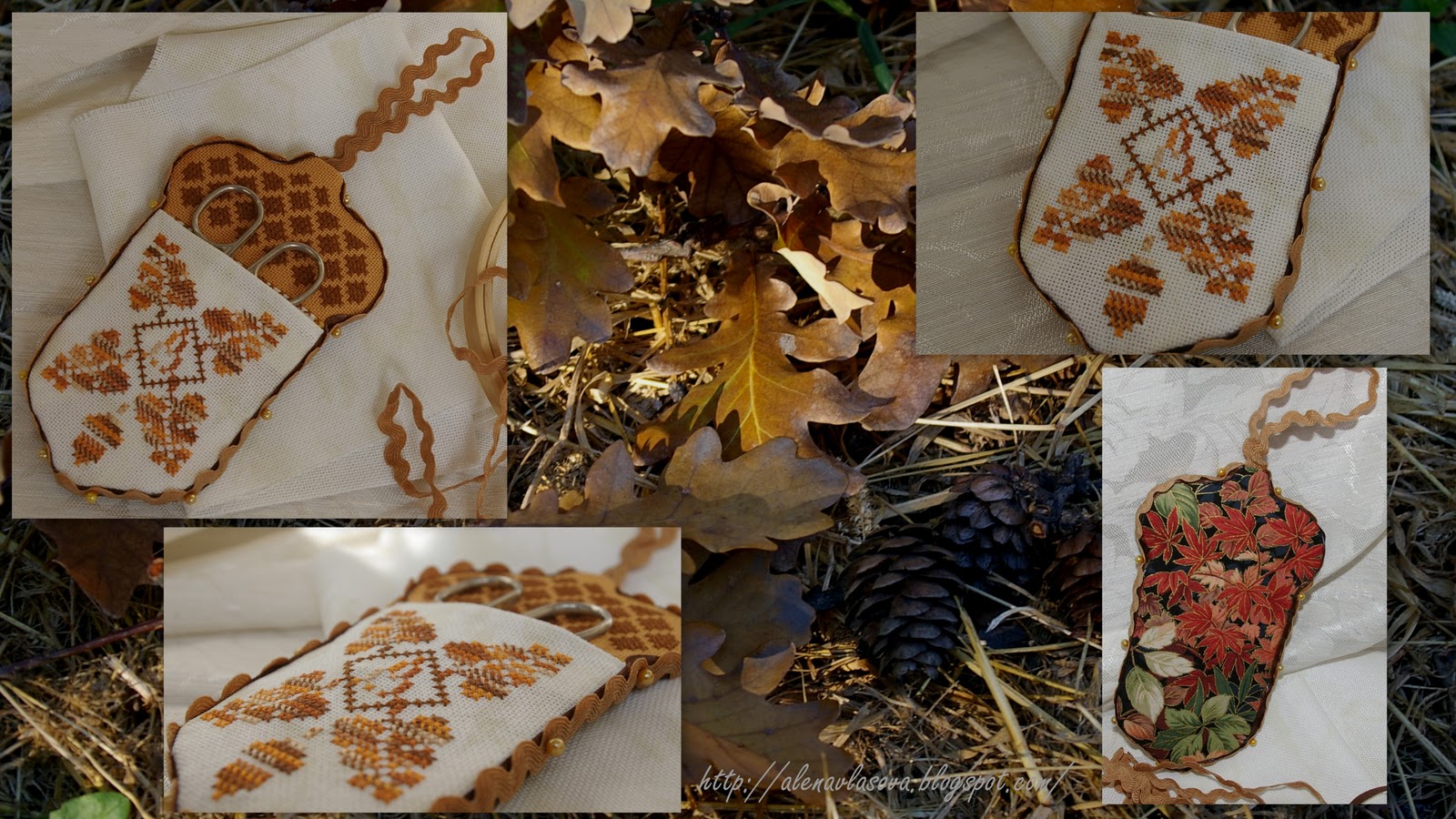 Канву брала двух цветов, мраморную с разводами (ну просто потому что у меня немножко обрезков от тортика осталось:)) и горчичную, 25 каунта. Листики и буковка А  - мадейра-меланж, ромбики - ДМС 433, выбирала просто на пару тонов темнее основного цвета. При 25 каунте размер желудя - 15 см на 9, в самой широкой части шляпки. Задник - американский хлопок с симпатичными осенними листиками.