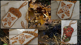 Канву брала двух цветов, мраморную с разводами (ну просто потому что у меня немножко обрезков от тортика осталось:)) и горчичную, 25 каунта. Листики и буковка А - мадейра-меланж, ромбики - ДМС 433, выбирала просто на пару тонов темнее основного цвета. При 25 каунте размер желудя - 15 см на 9, в самой широкой части шляпки. Задник - американский хлопок с симпатичными осенними листиками.