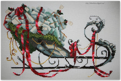 К моему удивлению, санки вышились быстро. Даже не смотря на то, что полторы недели ждала нитки и бисер, и вышивала еще параллельно пару дизайнов:))
