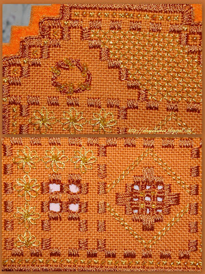 Ну что ж... без ошибок не обошлось:) Наверное, я так думаю-подозреваю, выбрала неправильный ирис:) Скользкий. Аккуратно закрепить его с изнанки было сложно, а потому изнанку я вам не покажу:))) Окошко порола два раза, ошибалась в количестве нитей, остальное шло легко, даже удивительно) Жду следующего этапа. Признаюсь, обмёточный шов меня пугает...немножко:)