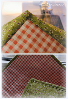 Выворачиваем бейку на лицевую сторону. С обратной стороны квилта должен получится вот такой уголок. С лицевой стороны выкладываем бейку, закрывая шов. Можно пришить её потайным швом вручную, можно прострочить по краю.