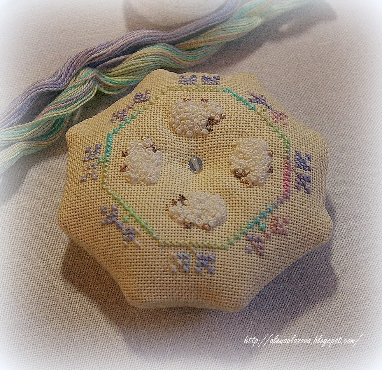 Про корзинку я вам уже рассказывала и показывала, вот она красавица со всех сторон, даже снизу:)) Игольничку такую делала первый раз, понравилась, буду делать еще:)))