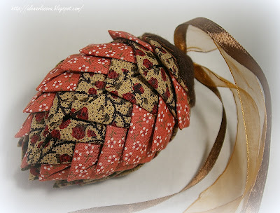 УдалитьА я как раз сейчас заканчиваю делать именно шарик))) Я его сшила из ткани и все треугольнички пришиваю. Очень красиво получается. А вот шишек не видела... теперь и ими займусь))) Спасибо!