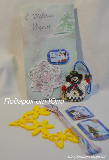 От Юли прилетела ко мне замечательная открытка и чудесные подарки! Спасибо, Юлечка!!!!:)))) Снеговичок чудесный:)))