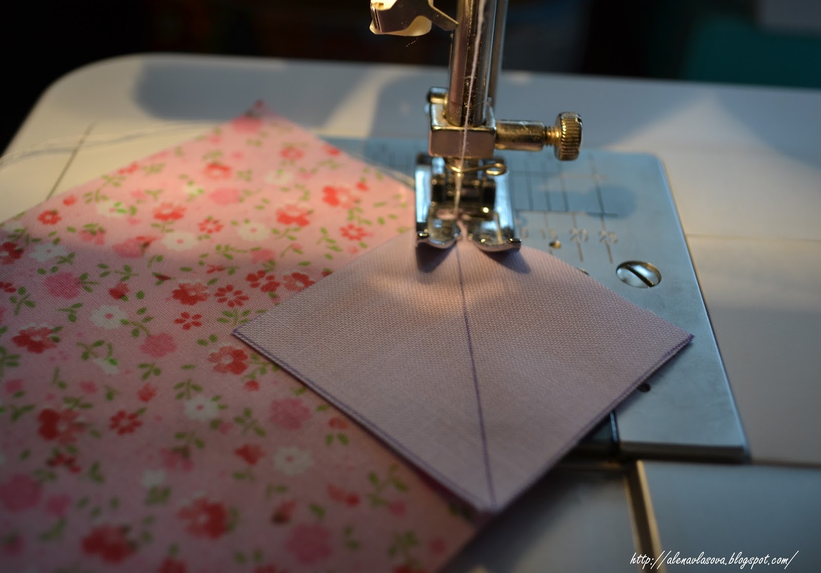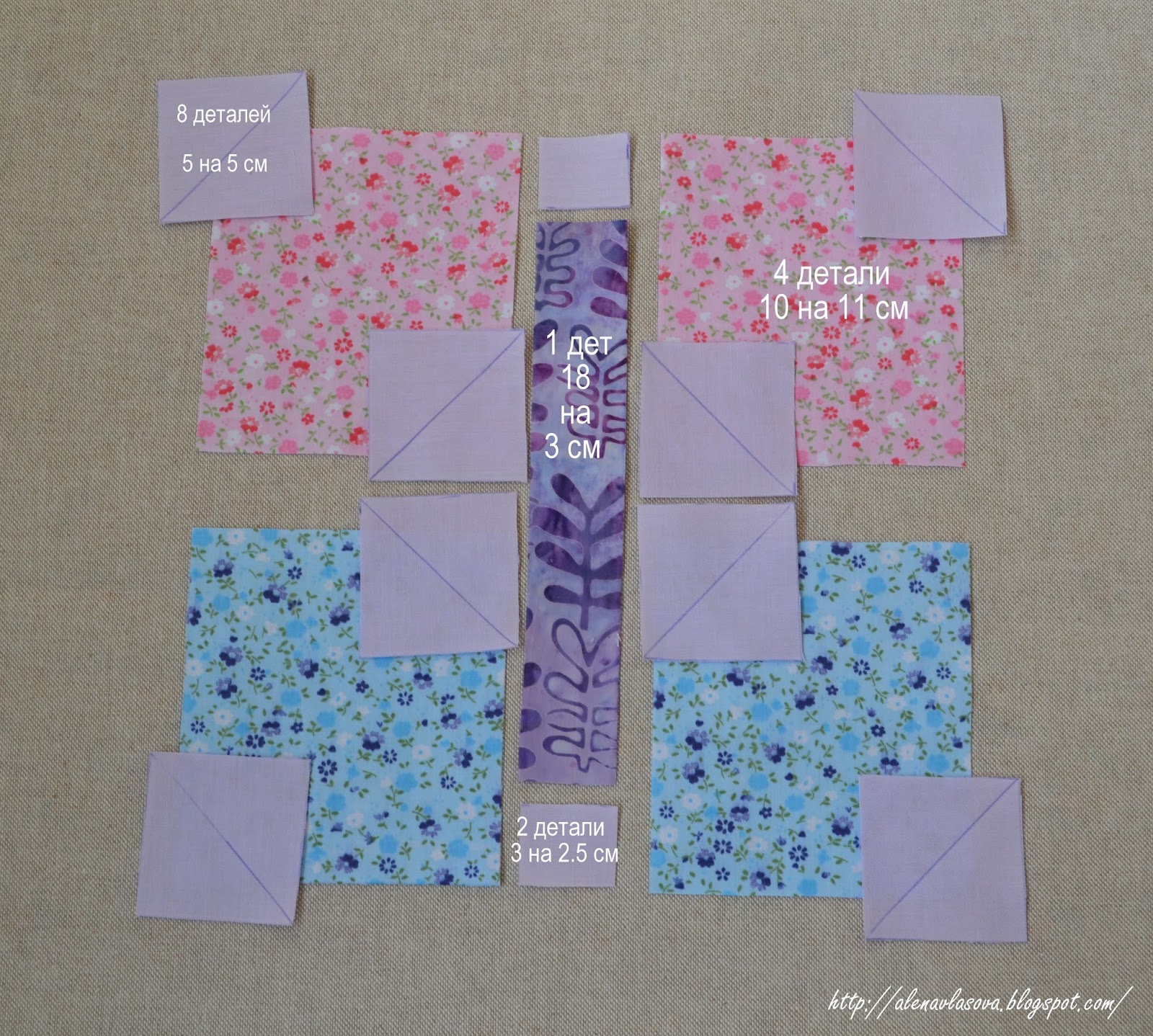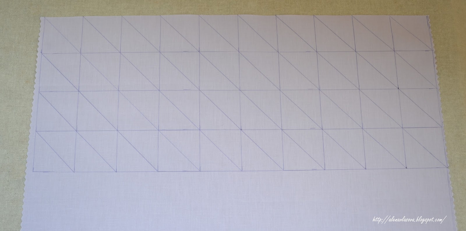 Выкраивая квадраты нужно нарисовать диагональные линии, по которым будет проходить строчка.