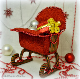 Первая моя новогодняя игрушка в этом году. Сани Санта Клауса. Игрушка вовсе даже не ёлочная. И находится она будет не НА ёлке, а ПОД ней:)) А в санях будут помещаться небольшие подарочки или конфеты, или игрушки, которые вдруг не поместятся на ёлке. Или всё сразу.