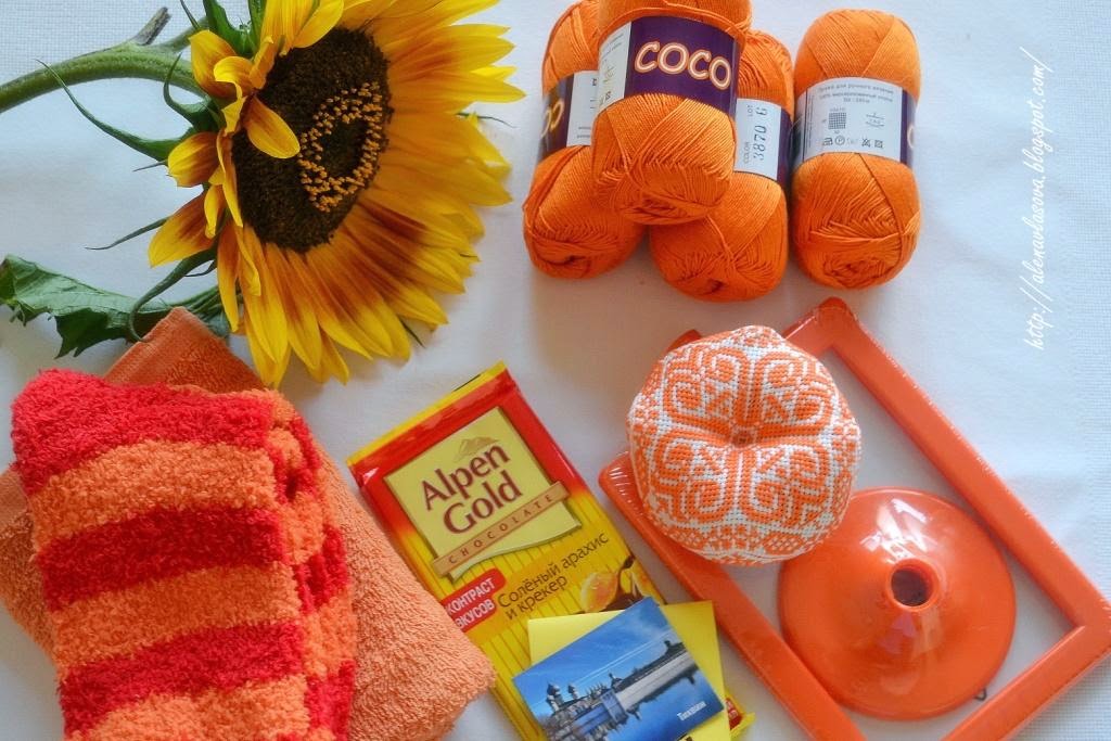 3. Ей нужно ко мне в гости - у меня оранжевая машина, оранжевая коляска, оранжевая ванная комната, детёныш в оранжевых куртках и футболках гуляет, и вообще, оранжевый мне очень нравится ;-)